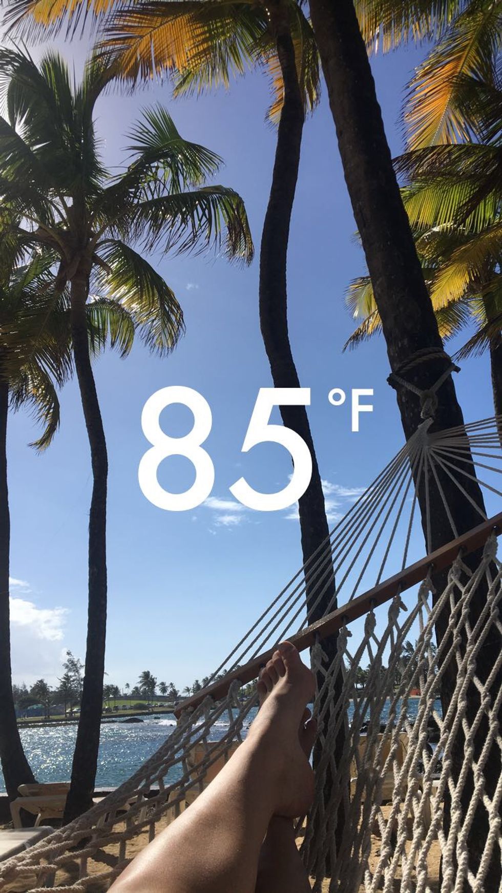 If you're okay with consistent temperatures of eighty-five degrees and slight humidity with a nice breeze from the ocean, San Juan is perfect for you. Just make sure you bring lots of sunscreen unless you plan on getting a gnarly sun burn. Every once and then occasional pop up thunderstorms show up, but they're a nice break from the powerful rays of the sun.