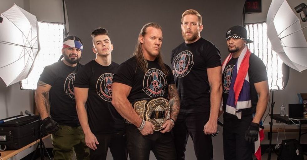 The Inner Circle is comprised of Sammy Guevara, Santana, Ortiz, Chris Jericho and Jake Hager. This group has made it's mark in creating havoc and are a must watch.