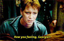 I'm not sure what I loved more; Ginny and Harry's kiss, or the hilarious and knowing look that George gave them.