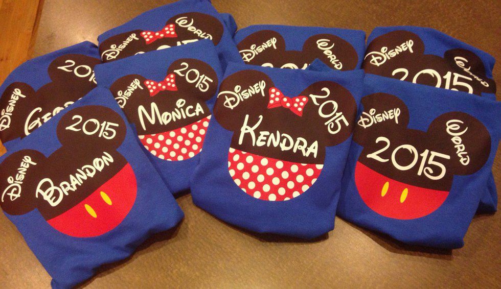Over the past several years, it has become somewhat of a Disney ritual to have personalized shirts made and sport them at the theme park. Go big or go home, right? So knock yourself out, and go crazy with it! Showcase your monogram outlined in Mickey Mouse ears, and make sure everyone in your party has one of their own! Oh, and don't forget to color-coordinate.