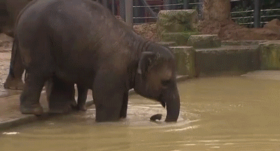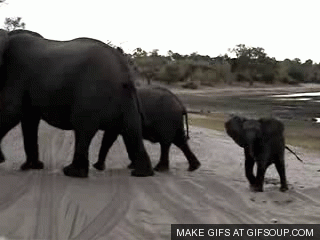 4. Elephants use their trunks for everything, including: breathing, eating, drinking, communicating, and playing. Calves swing their trunks around because their muscles aren't build up to use them properly.