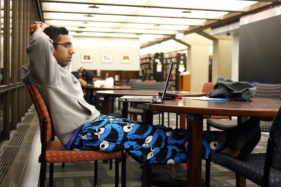 There's no worrying about putting on makeup, straightening your hair, or taking a shower before you go out because no one judges or cares what you wear to the library.