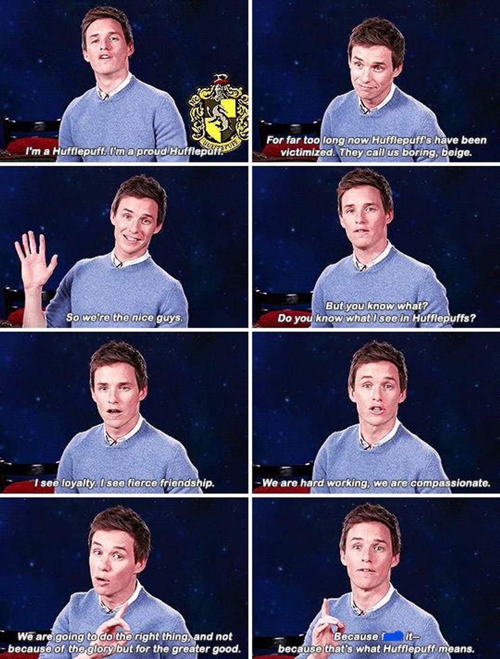 The sorting hat even says, "They are just and loyal / Those patient Hufflepuffs are true / And unafraid of toil." What could sound any better, right?