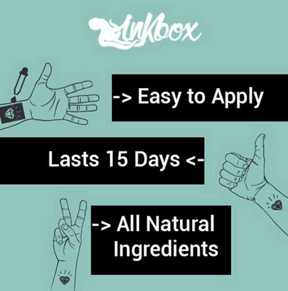 The Toronto-based company promises its tattoos will last for two weeks. They look real with the same dark, black hue of a typical tattoo. However, these tattoos are made of a fruit-based, all-natural ingredient mixture of Genipa Americana, rosemary oil, xanthan gum, potassium sorbate and citric acid according to its website.