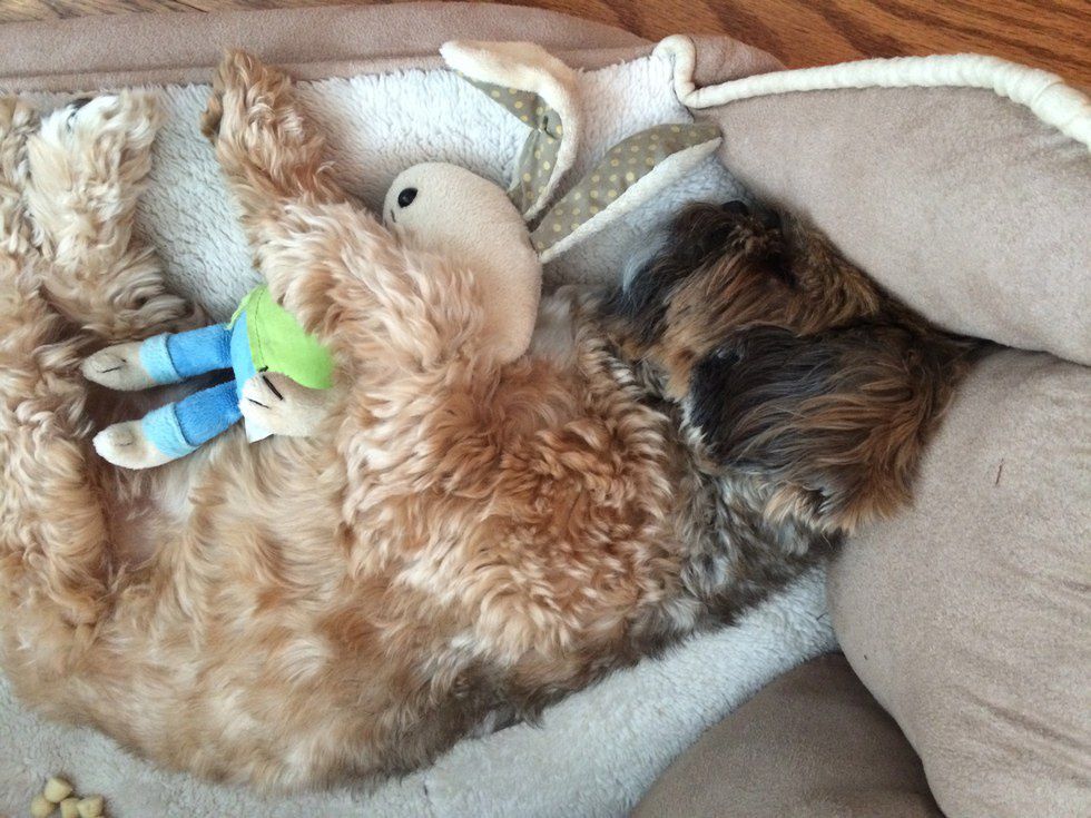He loves to sleep (all the time) and this is totally relatable. Sometimes he'll even fall asleep next to his favorite toy. How cute is this?