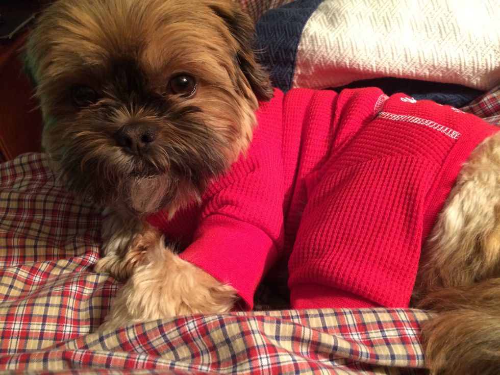 He totally hates it when we put him in clothes. But he just looks too adorable in this onesie!