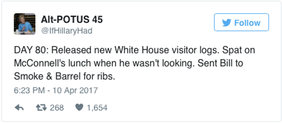 The number one reason why I miss Hillary Clinton has to be this. When I think about the job she would've done as president, my eyes almost start sweating again. She knew the presidency inside and out. She would never have embarrassed the country, put Nazis in her cabinet, bombed Syria, then confused it with Iraq, while denying refugees access into the country.