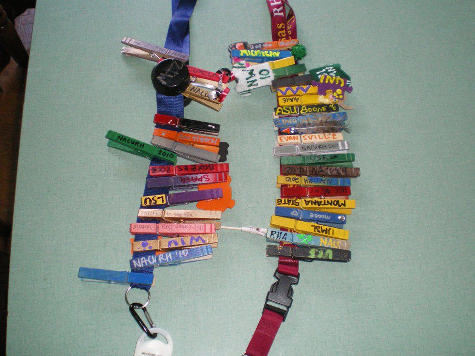 Clothespins, clothespins, clothespins are everywhere. Clothespins are a way that each school could represent their spirits and they exchange it with other delegates from other schools. All of those clothespins are decorating according to the theme of their schools. Or I would say, clothespins are like souvenirs from my school exchange with others to represent the memories we had at NACURH.
