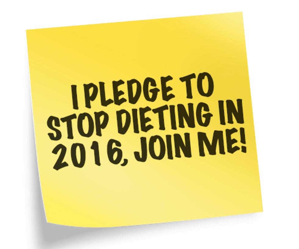 To all you diet fanatics, make your 2016 New Years resolution be to ditch the diet, and to make lifestyle changes that form healthy habits. Find some healthy recipes you want to cook up, and savor each dish. Food should not be the primary focus of each day. Of course, we need to nurture our body, but diets cause us to become obsessive over food. They cause us to overlook the other beauties of life. Ultimately, they just add stress to our lives creating unnecessary pressure. You are good enough; you are worth milestones more than the number the scale reads. Eliminate the diets and eliminate the scale too, if you have must. Don't end up like the girl above, just kiss the diet goodbye, and repeat after me: