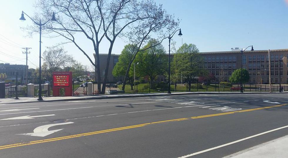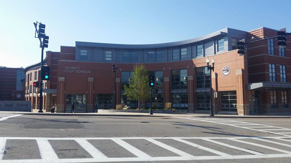 Here is North Quincy High School, the other high school where a basketball game could also be held.