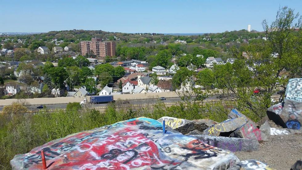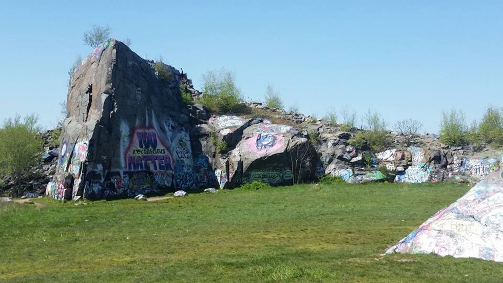 Although the rocks at Quarry Hills are covered in graffiti, you can still climb them and enjoy the views from above.