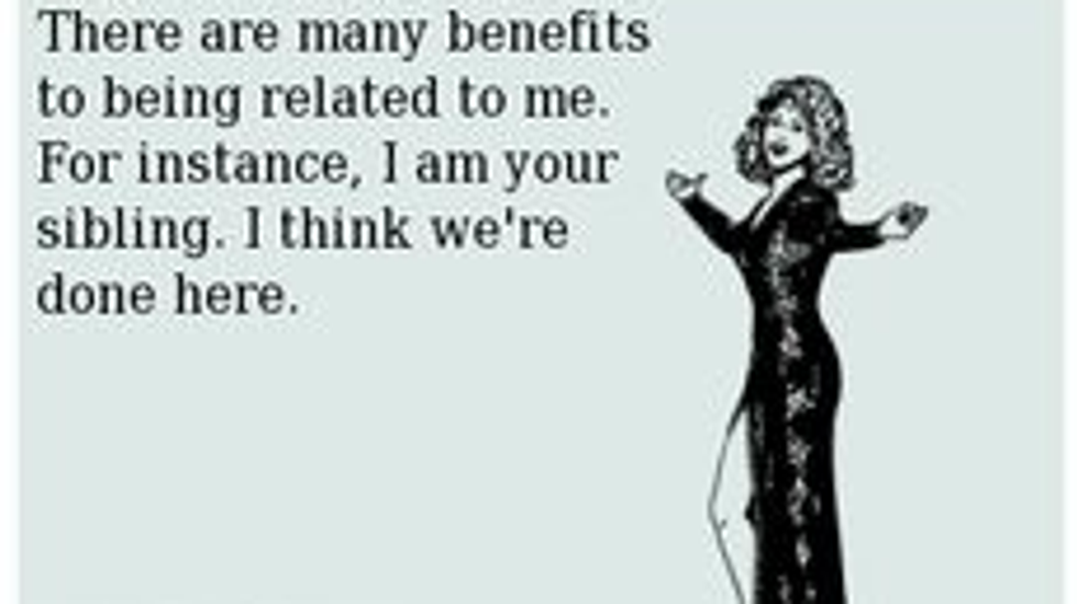 There is no one in the world who is more closely related to you than your sibling. Close as in emotionally close and genetically close. You have similar tendencies and habits, whether they are apparent or not. This means that you understand each other’s idiosyncasies and implications. You are basic psychic with each other, which comes in handy as your clandestinely converse at the dinner table without your parents knowing. They also do things that would normally annoy you, except you do them too so can you really hate?