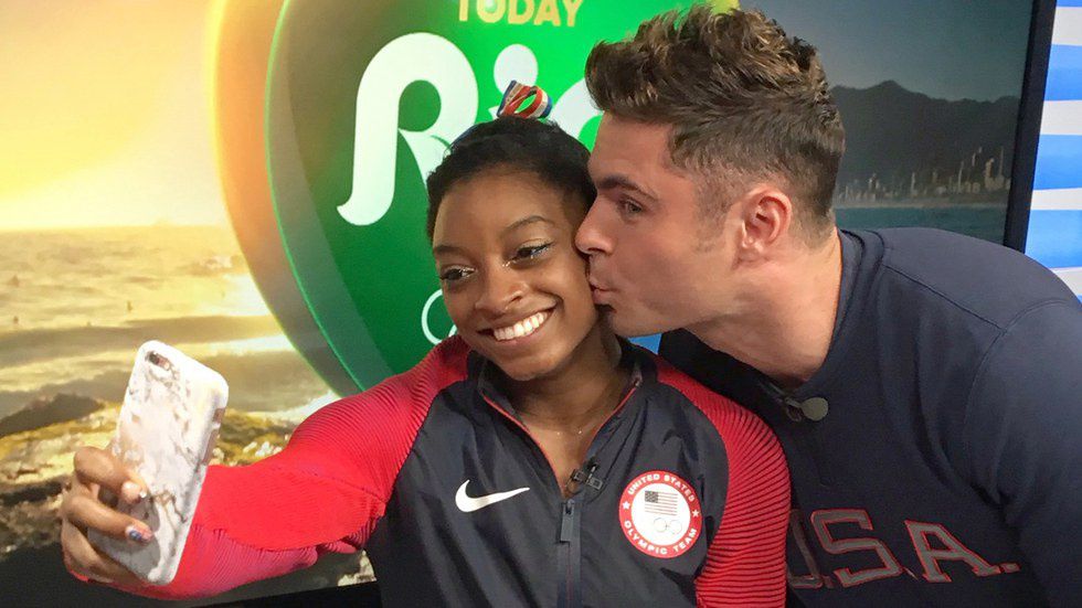 If winning 4 gold medals and one bronze medal isn't enough, she won Zac Efron as well! Simone told Ellen earlier this year that she had the biggest crush on Zac and he definitely remembered. Not only was be rooting for Simone via twitter, he even flew out to Rio to surprise her and he Final Five. Love at first tweet maybe?