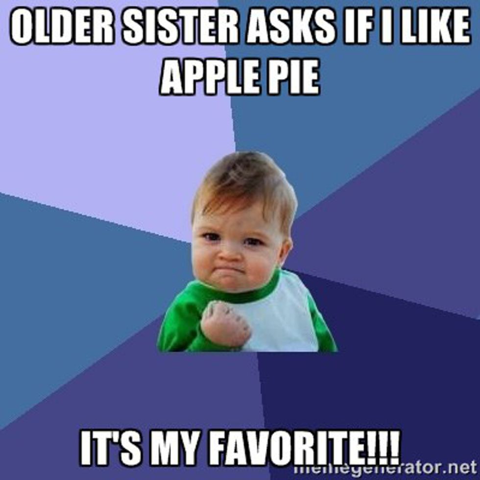 Older sisters can be mean at times, but sometimes, as the youngest and most spoiled child, you need a good kick in the butt from someone. It will hurt, but it will also make you stronger.