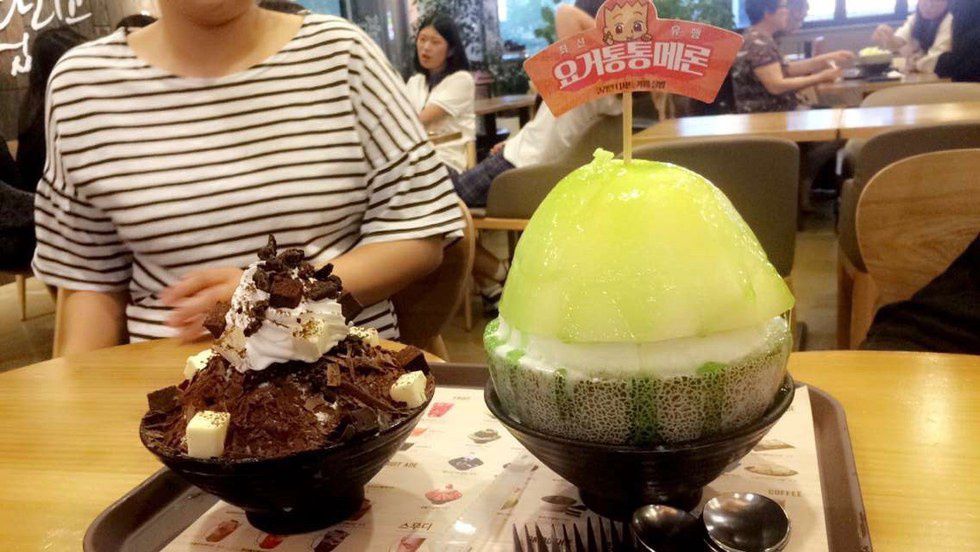 There are a lot of cafes and dessert places in Korea so don't worry about not being able to find one after a meal or if you want to meet up with friends. In fact, there's probably 5 on every block. The atmosphere is always nice and there's always a cute little theme to it. People meet up with friends and have one (or three) cups of coffee. If you are alone and looking to find some company, I definitely recommend the cat or dog cafes! There will also always be free wifi at every cafe you go to. Some desserts you should definitely try out is the bingsu, which is basically ice shaved dessert with fruit toppings or chocolate or anything you can possibly want.