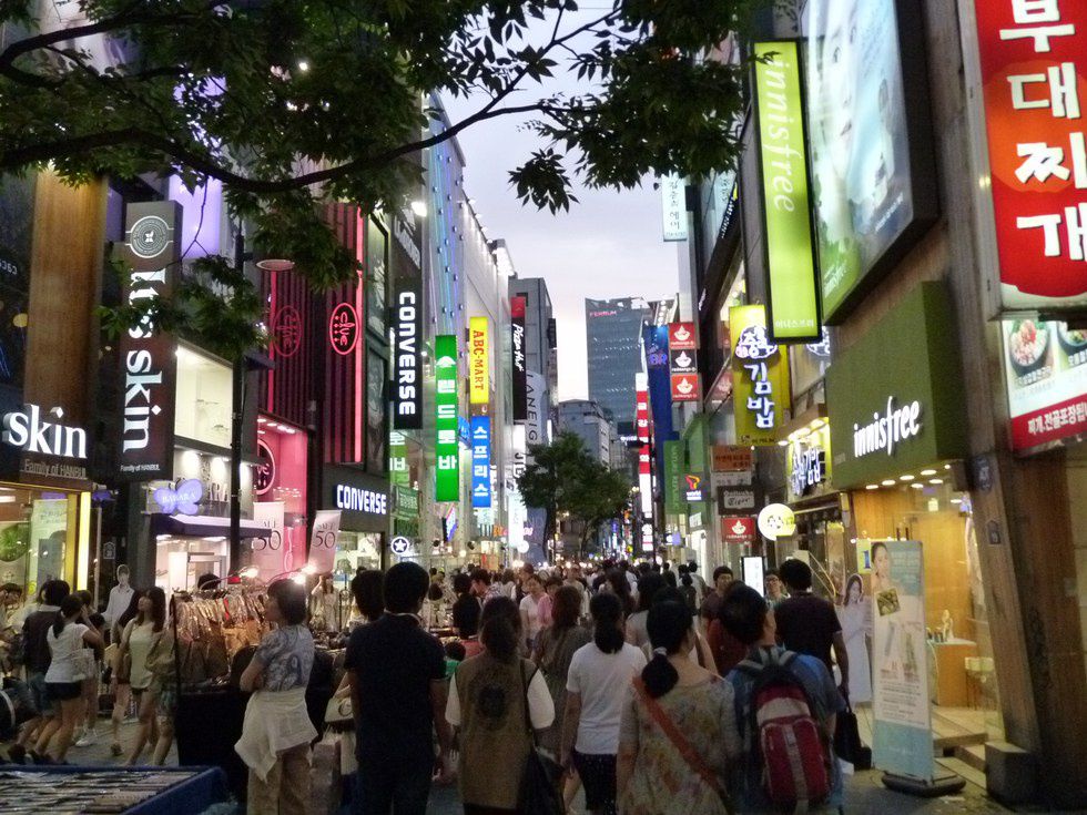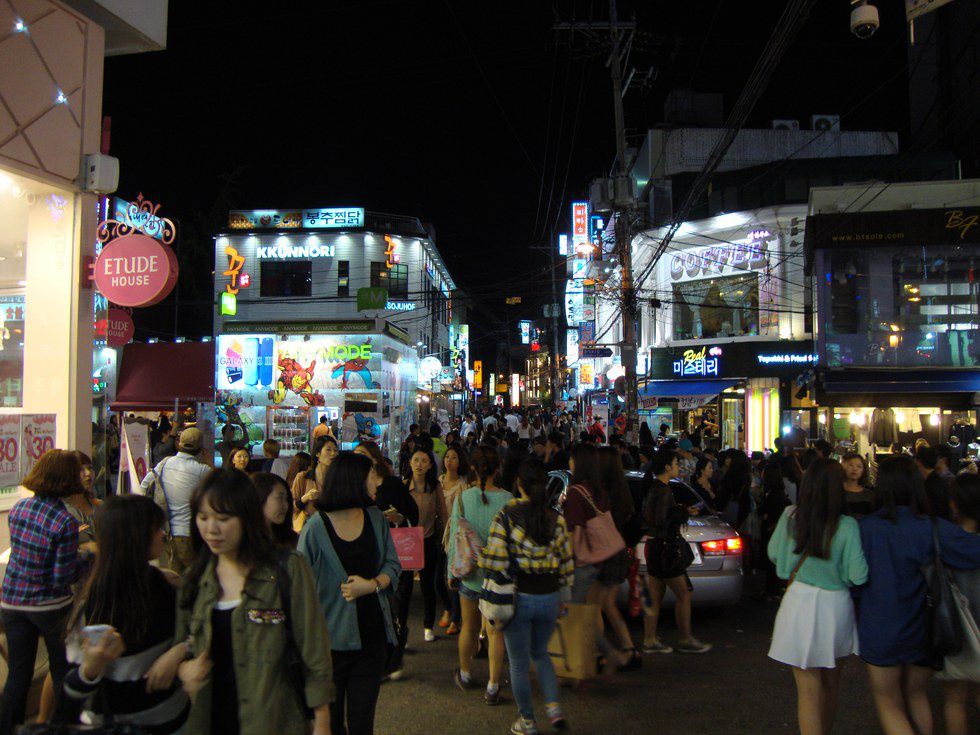Korea's drinking age is 19 so during my time there I was not able to drink but I still was amazed by their drinking culture. It was so different from what I saw in the US. There were so many drinking games that you can play and songs you can sing. Koreans also like to drink casually at home with their meal. If not, they go out with friends and order "An-ju," which is basically a big appetizer-like dish you share while you drink. Korea also has invented what is called "chimek." It's basically just having beer with your fried chicken. Fried chicken comes in all flavors in Korea from garlic to sweet and spicy. Korean chicken is just different from what I've tried in America and it's a bigger deal in Korea as there is more chicken restaurants in Korea than there are McDonald's in the WORLD. If you are young and looking for somewhere to hang, Hongdae and Myeondong is definitely the place to go. I walked in to Hongdae and was overwhelmed by the amount of people there was and food you can eat. Many people are there to go clubbing or to go to a "hof."