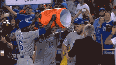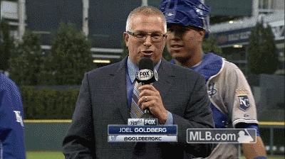 A tradition, whenever the Royals win is to dump ice water, or gatorade, on whoever is being interviewed. Joel Goldberg is usually included in this as well and has grown accustomed to it.