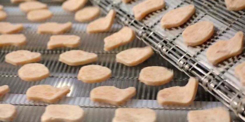 If this picture of the nuggets don't turn you off, maybe the ingredients will. McDonald's may act like their nuggets are fresh but here's what's really in them: water, sodium phosphates, food starch, salt, flavoring, wheat starch, dextrose, citric acid, yeast extract, rosemary extract and safflower oil. Let's not forget how the meat was made too! See McCruelty below to learn more.