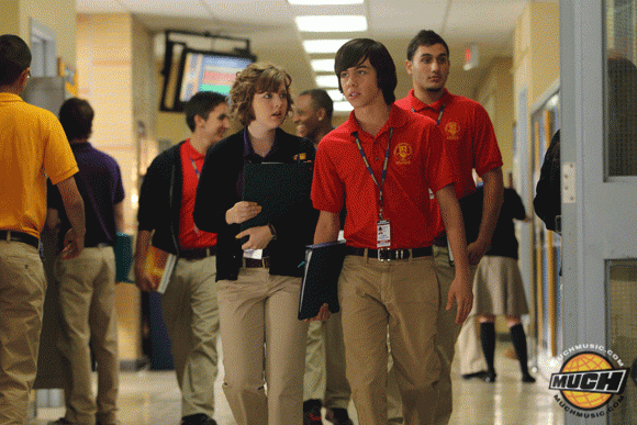 After students were almost stabbed at a dance, Degrassi decided to crank up on security. School uniforms (with color Identification to indicate what grade a student was in), ID tags, metal detectors, and so forth.
