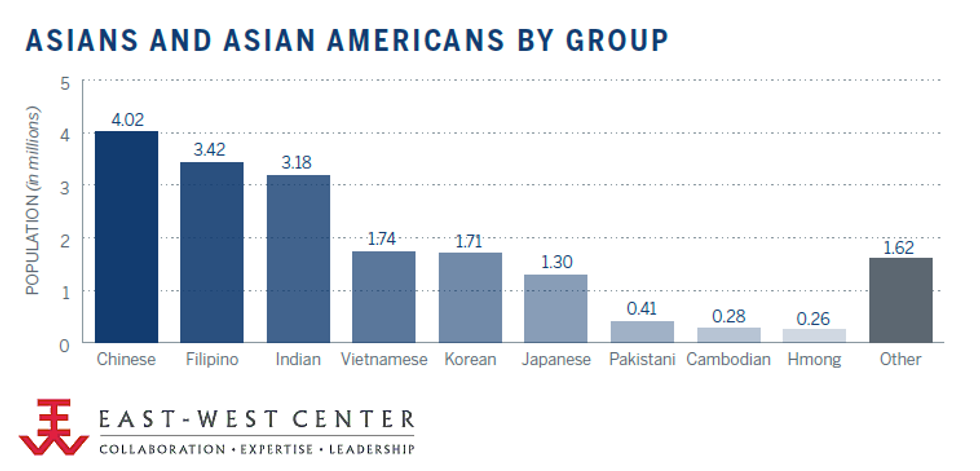 According to 2010 Census Bureau data, the three largest groups were Chinese, Filipino, and Indian.