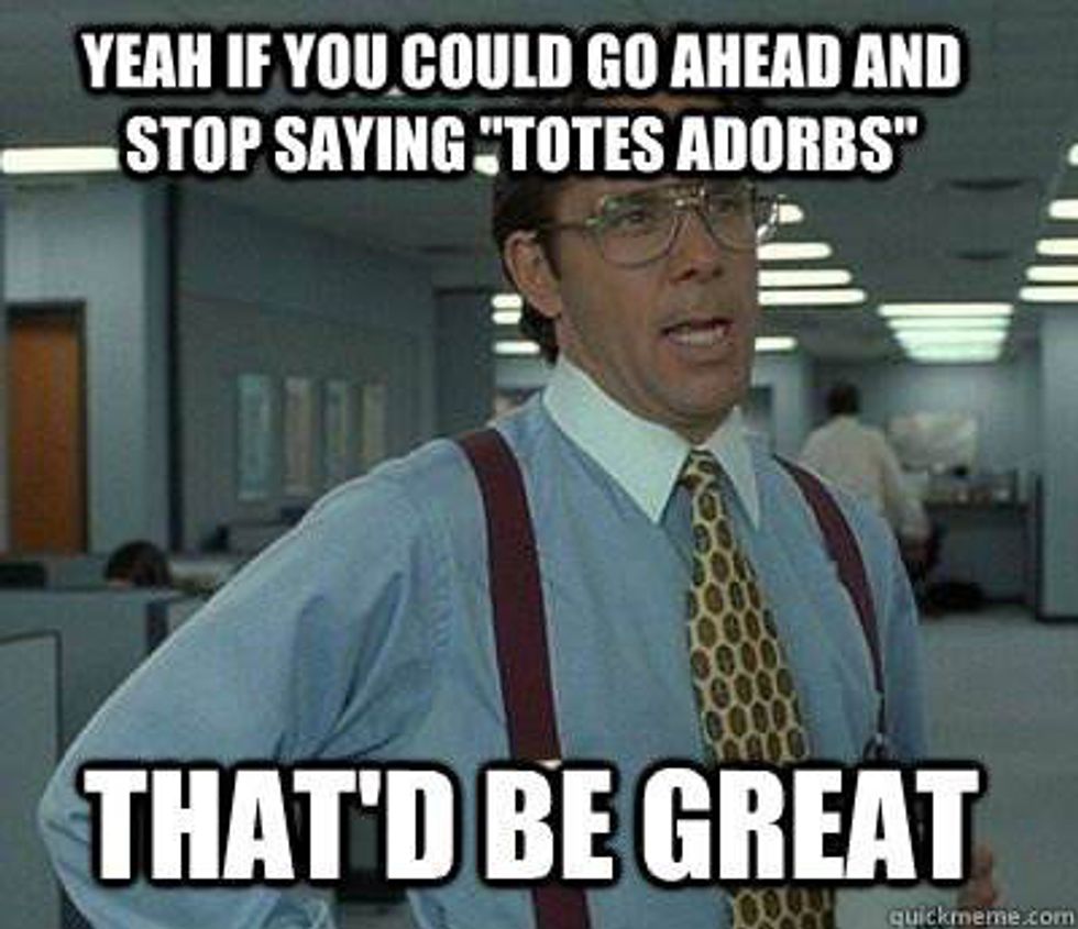 10. You've used the words "totes," TBH," "adorbs," "literally can't even," etc.