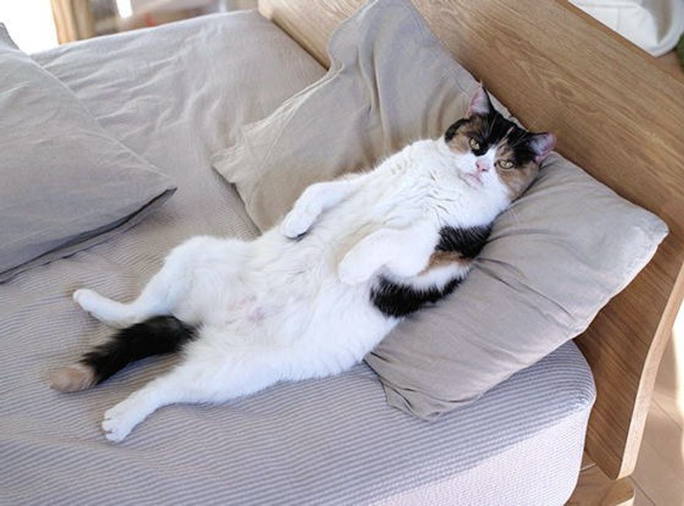 8. Every night, you end up dangling off of your bed because your cat insists on hogging all of the space.