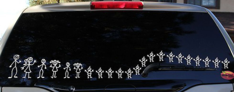This is a suburban family staple along with the stickers all along the inside of the windows and a family tree sticker on the back window.