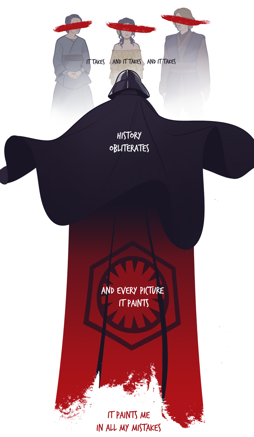 I was watching the new Star Wars movie the other day, and I kept thinking to myself “Man, the lyrics to The World Was Wide Enough where Burr says ‘Now I’m in the Villain in your history...history paints me and all my mistakes' really fits Darth Vader incredibly well.” Hamilton lyrics work. with. everything.