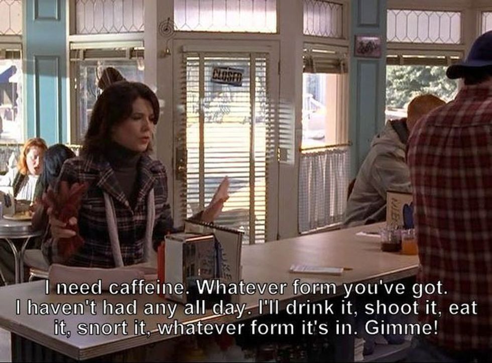 For some, a morning cup of coffee is not a simple cliché, but a necessity for survival. If you're like me, you can't imagine staying away through a morning class (or evening class, or afternoon walk across the sidewalk) without your daily fix. If someone took away your coffee, you'd probably turn into a character from The Walking Dead. But take heart, dear coffee-addicts! You are not alone. The Great Lorelai Gilmore is here to test your true commitment to caffeine. Here are ten signs you love coffee just as much as she does.