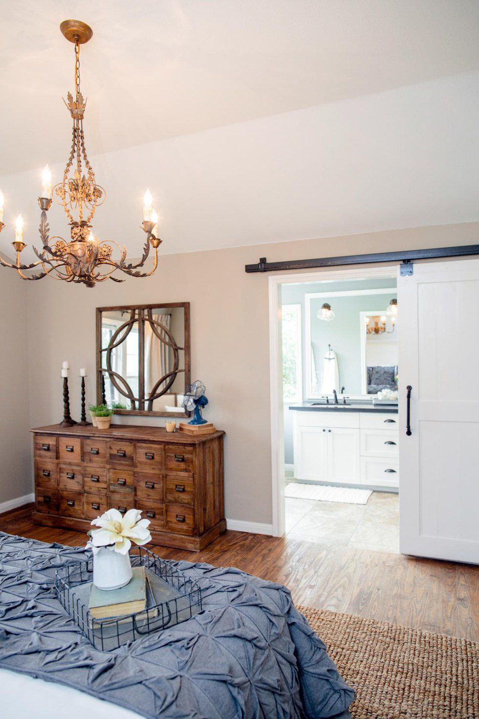 Who would have thought that a sliding farm door would look so great in a bedroom, or even in a kitchen? Joanna's design choices are so beautiful, and they have you wanting a farm door in every room of your house.