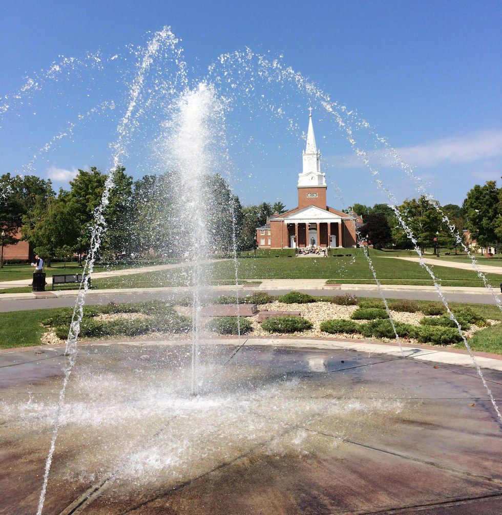 Right in front of the oval is our massive fountain that both college students and townies run through, cooling off in the heat early fall and late spring. It's an right of passage, bonus points if you manage to play in it while it's dyed for Homecoming.