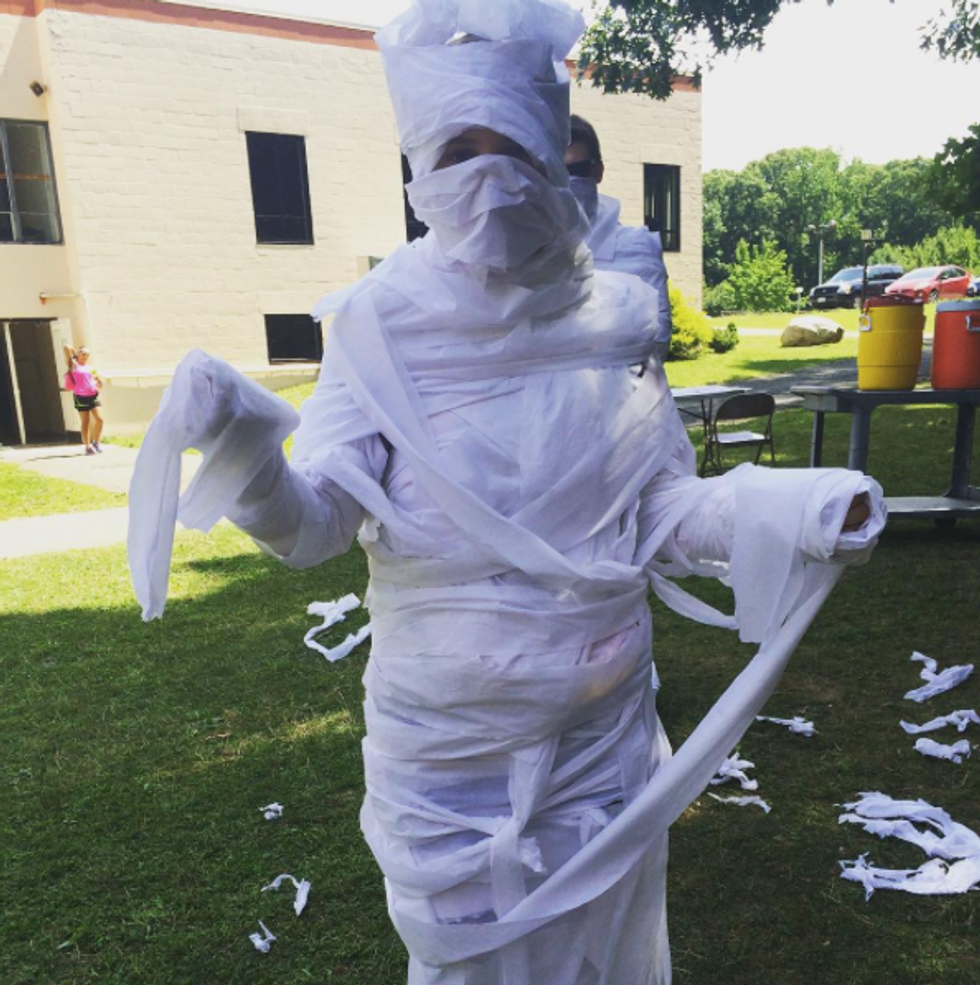 Yes, that's me. And yes, I am a mummy. Getting pied in the face, getting paint thrown at me, and sliding down soapy slip n' slides are among the other ways I sacrificed my dignity.