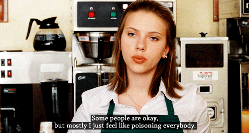 My coffee addiction began at a pretty young age, and that's what inspired me to apply at a coffee shop. Whenever I tell people that I work in a coffee shop, they always laugh and go, "Oh man, what an easy job." Now, I'm not saying that slinging coffee beans and steaming milk for 6-8 hours is the HARDEST job in the world. What I am saying is that, when your drive-thru line is gridlocked and every single customer wants a 32oz blended drink, or your decaf shot isn't pulling, it's not the easiest job.