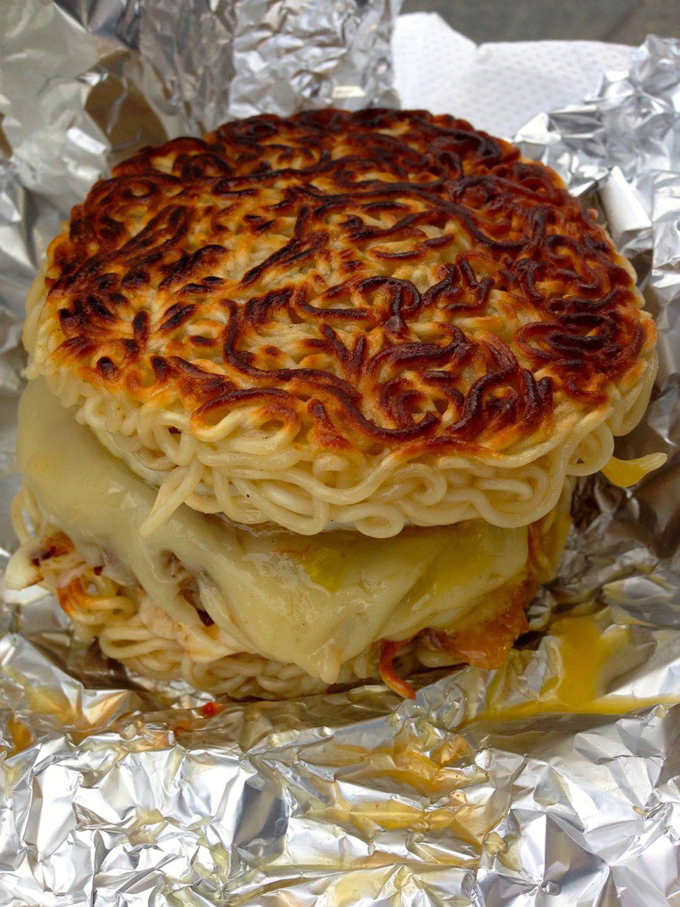 ...And trying new and odd foods like the Ramen Burger