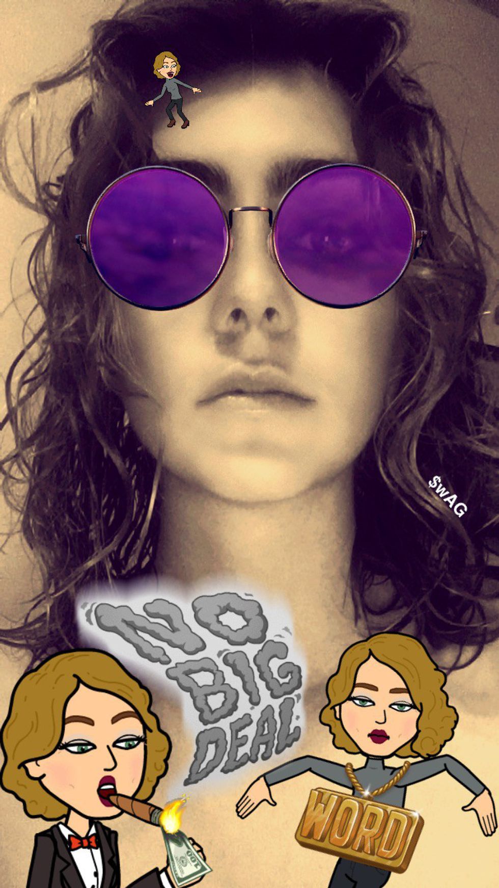 6. You take a lot of selfies, sometimes embellishing them with filters, several stickers and Bitmojis, then post it to your Snapchat story.