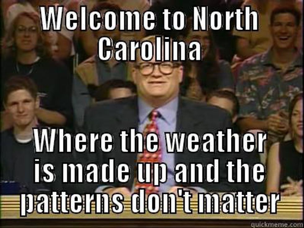 6. You, and everyone around you FREAKS OUT when the weatherman calls for an inch of SNOW...