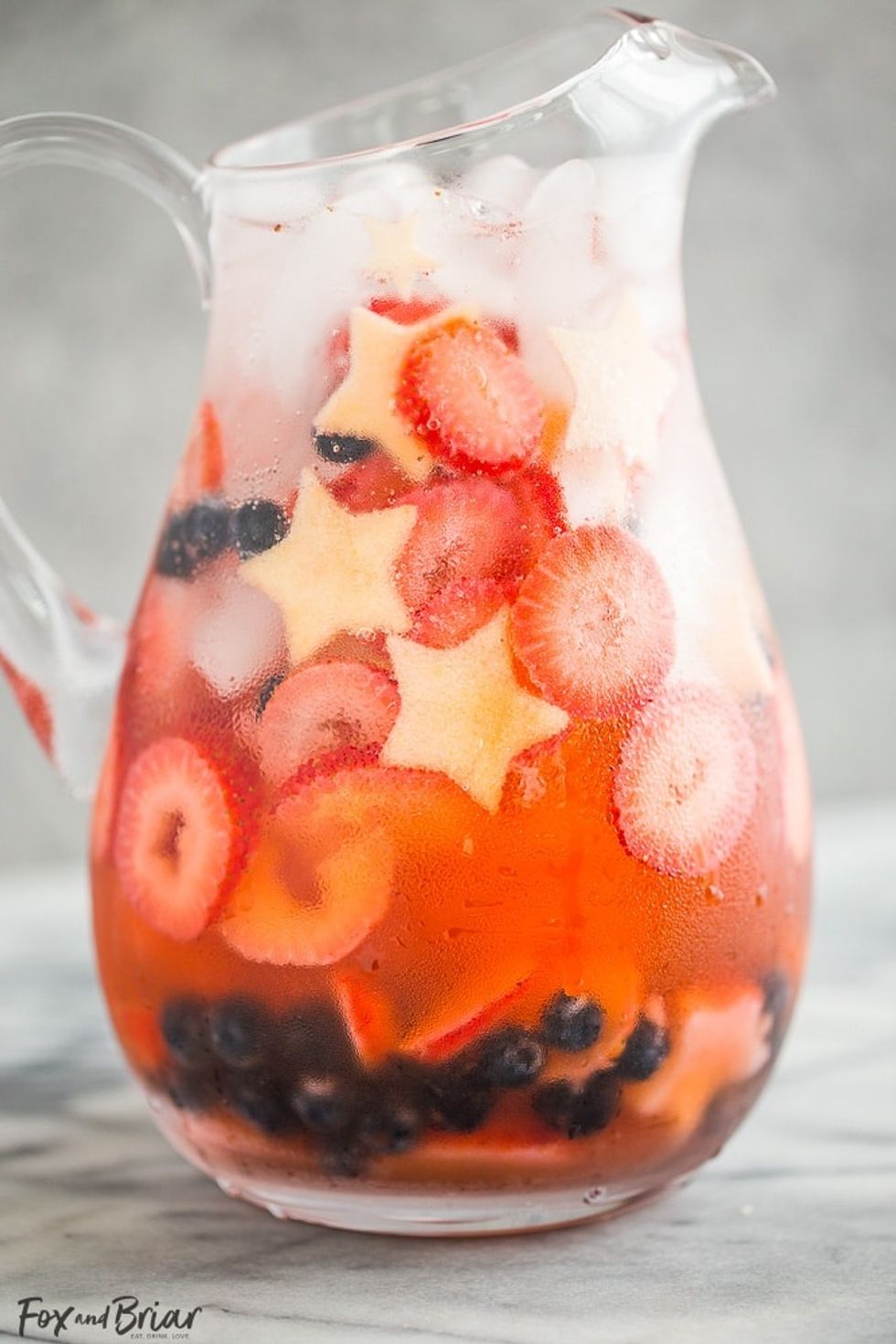 What better drink to celebrate the most patriotic month of the year? This refreshing beverage couldn't be simpler to make- all you'll need is some white wine, sparkling water, blueberries, strawberries, and apples!