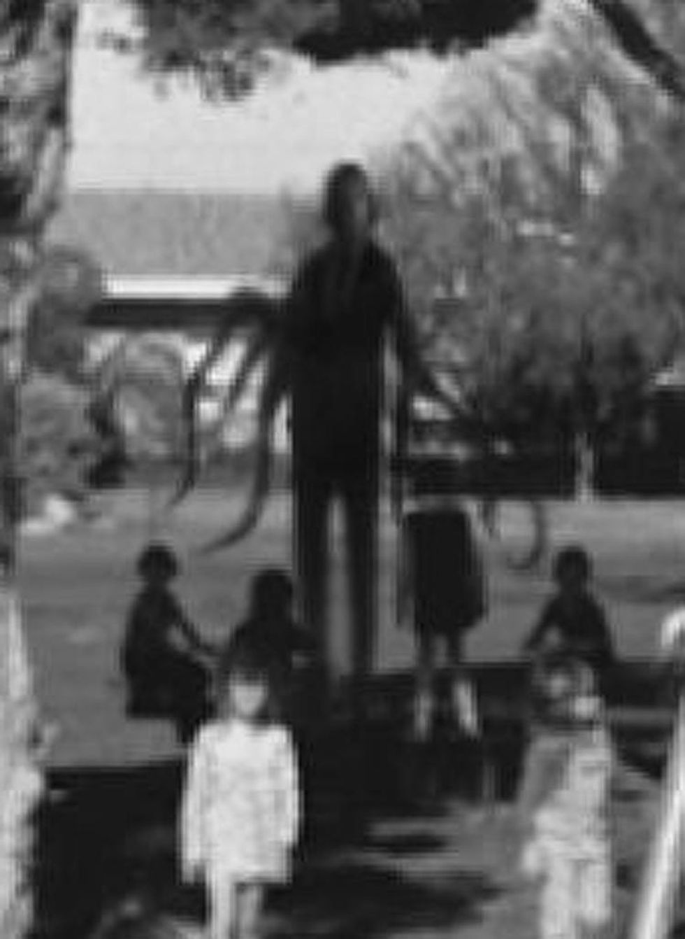 Slenderman is a legend that has existed for centuries. He is a man who is tall with slender arms and legs. He doesn't have a face; rather a white cloth-like fabric covering it. The scariest part is that no matter who he decides his victims to be, there is never any evidence or bodies suggesting that he was there. Can't see him in that picture? Look closer.