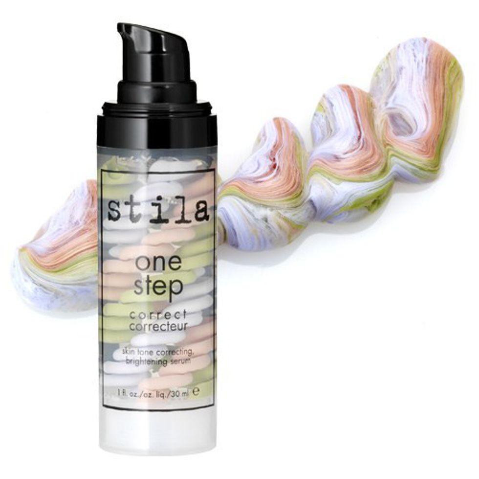 It contains green to counteract redness, purple to prevent a sallow-looking face, a salmon color to brighten, and a serum to hydrate and treat your skin!