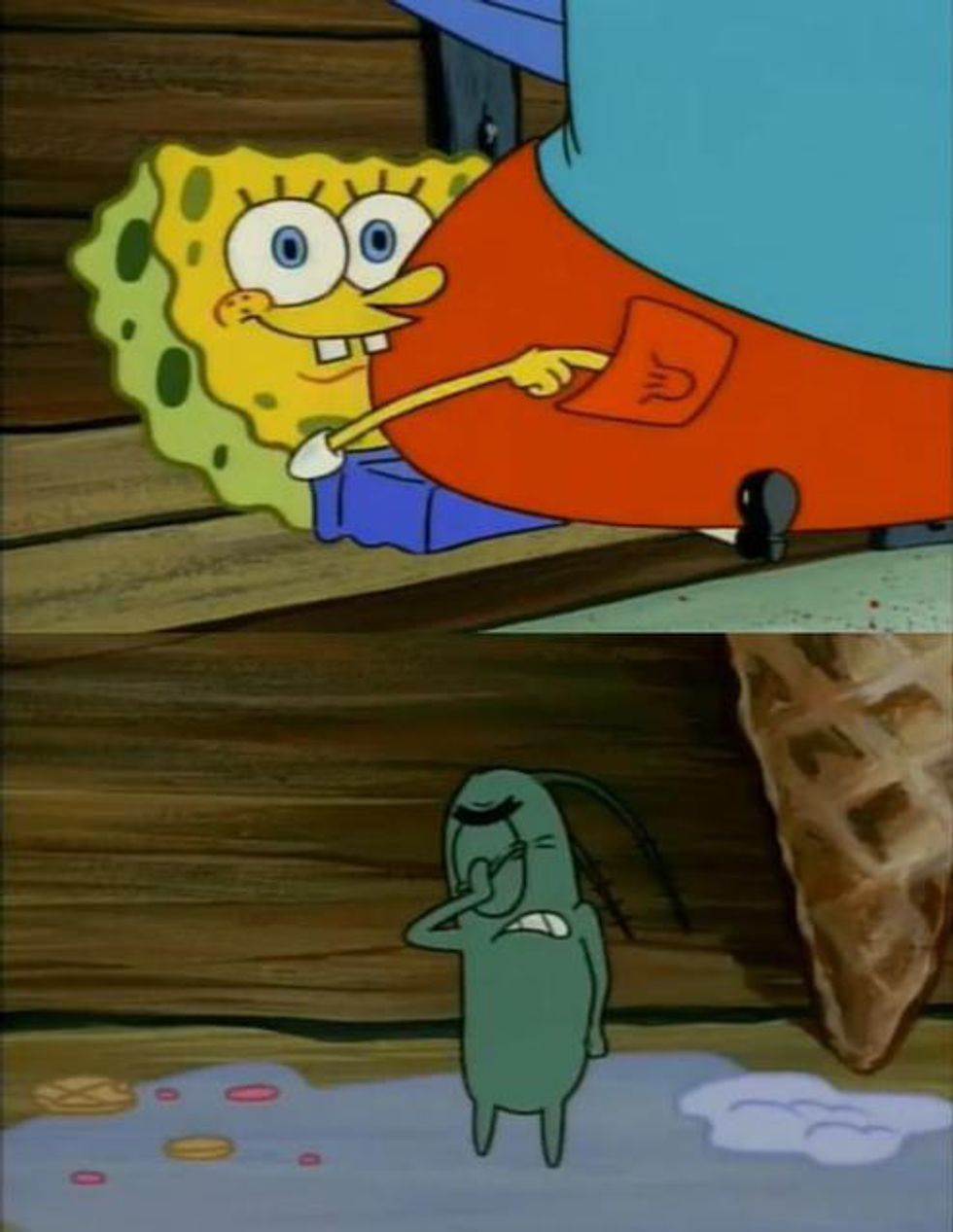 Ha. It's ironic because Patrick is dumb...wait, that's not the joke?