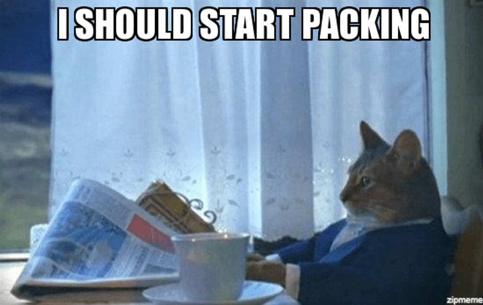 This is the stage with the perfect balance of bliss and anxiety. You know you should be packing, but you pick the more appealing option of not packing.