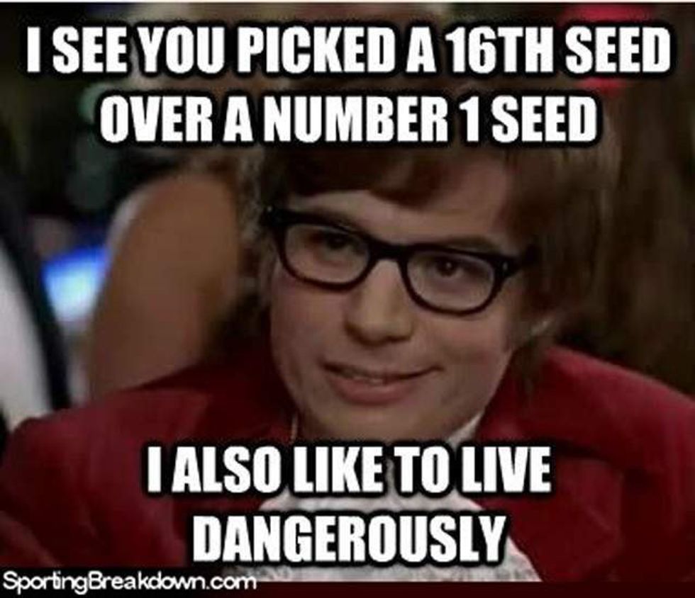 March Madness. It's that time of the year where we make brackets about teams who will either let us down or fulfill our wildest dreams and then gather around the TV and scream at it either way. It's exciting. It's emotional. You have to decide whether to go against your best instincts and go with your alma mater or go with the number three team, but then realize that this is March Madness and that everything is a free-for-all. Here's a list of your reactions to March Madness as it happens.