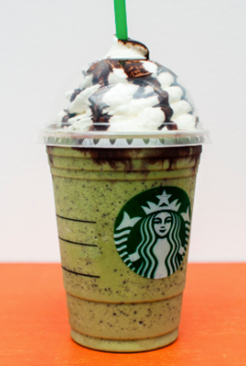 Try the Franken Frappuccino for a chocolately, mint frappe. An official temporary item!