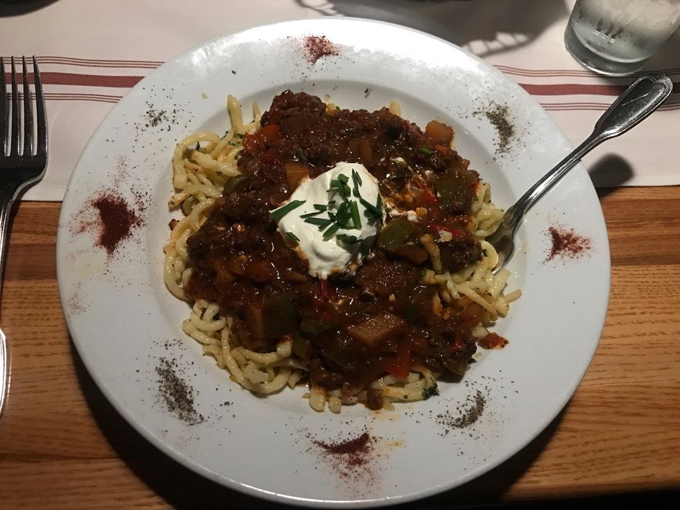 A short train ride later and you'll be in Germany. Kurt's Euro Bistro is known for its traditional German cuisine. The dish above is "Kurt's Favorite," which is also my personal favorite; it's beef goulasch soup over schwabian spaetzle. Their jaegerschnitzel is also quite savory. When you hear the cuckoo clock chime, it's time to head south for some Mediterranean cooking.