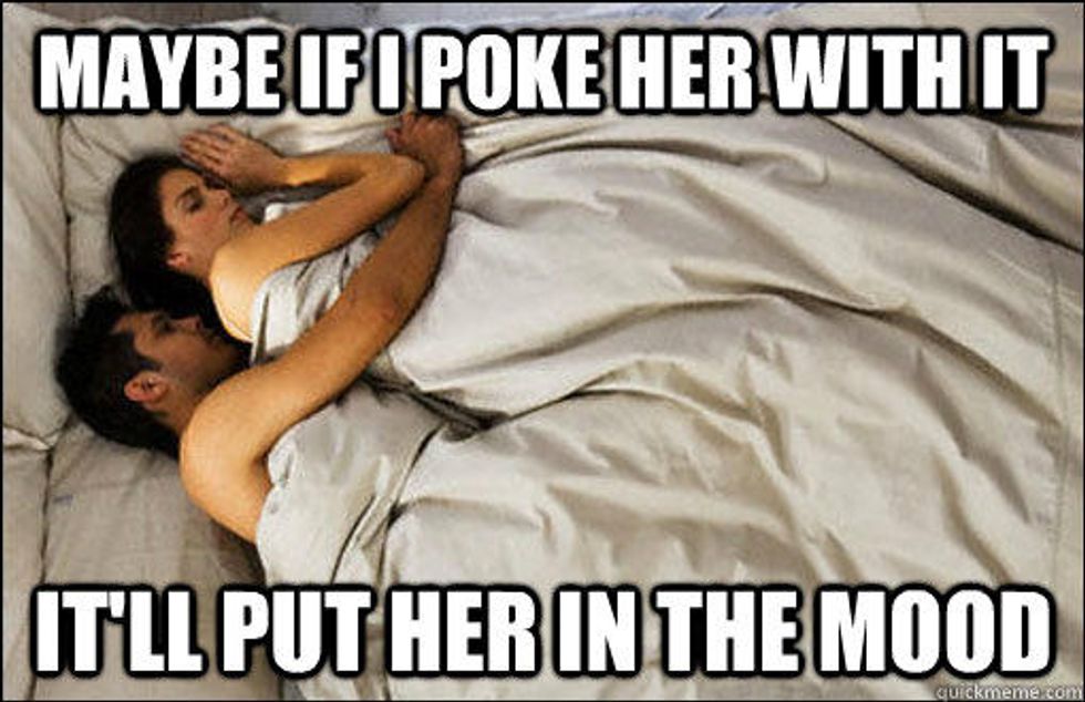 8. A guy will typically find his way to the other side of bed only to wake up finding his girlfriend Googling if it means they have a weak relationship