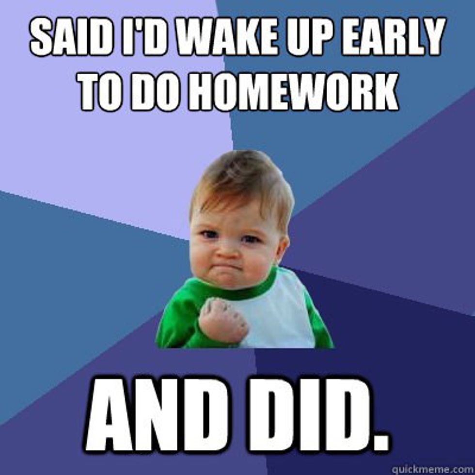 7. Procrastination somehow just became your middle name. The goal at this point is to get it at least done by the time it is due. Whether it requires you to read your assignment while walking to class or waking up at the ass-crack of dawn. Slowly but surely, the show must go on.