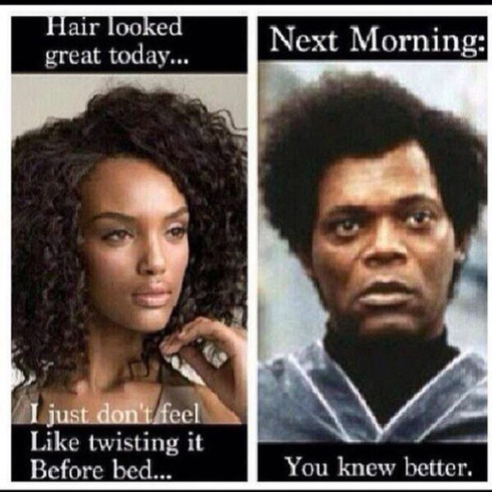 No. You have to do something to maintain that wash and go, twist-out, etc. Or the next morning you will regret it and be looking like the pictures above.