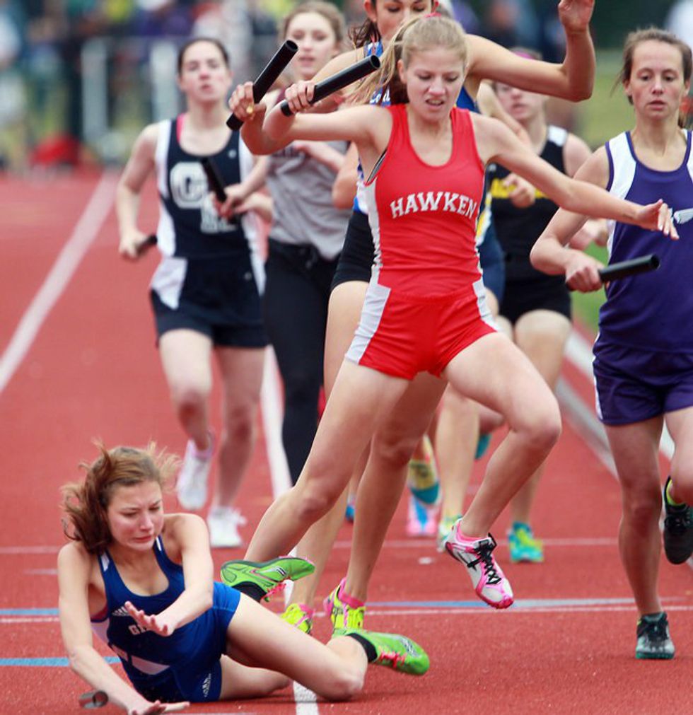 All you have wanted in your track career was a cool, intense, action shot of you running. Possibly of you crossing the finish line, leading a race, or exchanging a hand off. Unfortunately, every time, it is of a pale, wheezing, distraught, sick, old- looking, cheek sagging runner that you are sad to identify as yourself. Please, keep the cameras away.