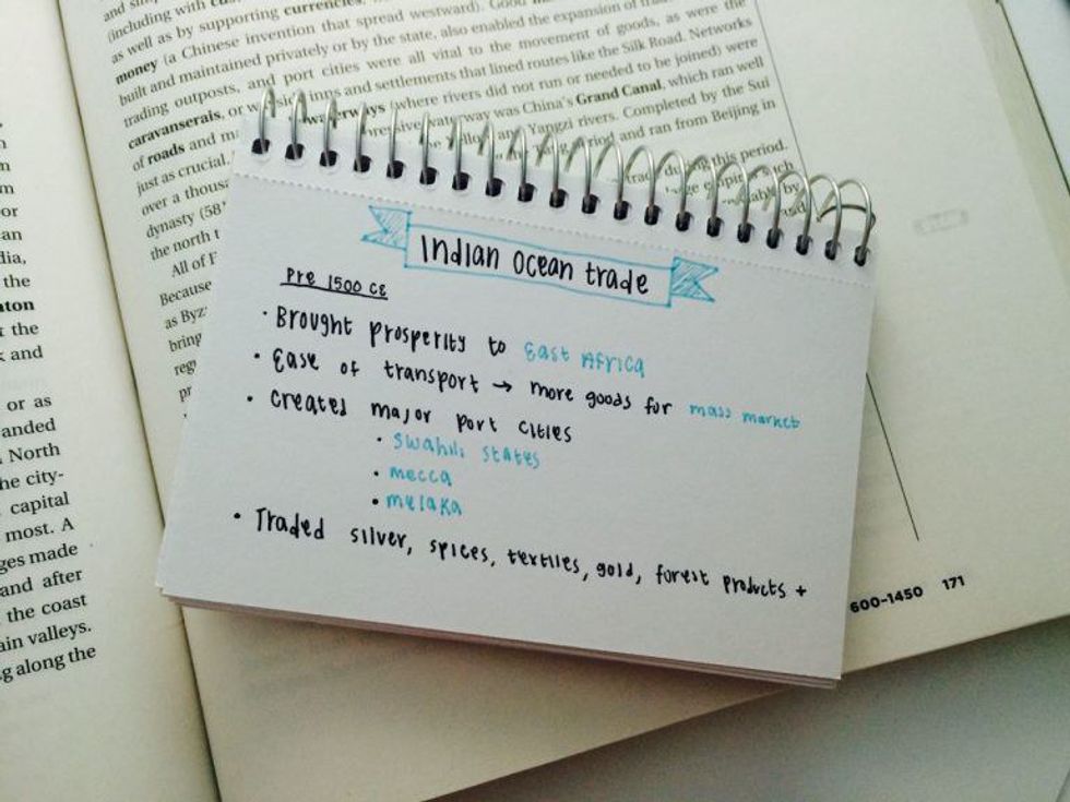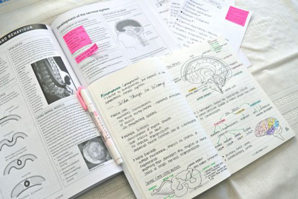 Writing out your notes neatly will make studying much more enjoyable and a lot easier! Instead of trying to figure out what you wrote down, you can focus on specifically the information. It also makes it easier to find certain topics and notes you need to review. Color coding by using different pens and highlighters is a great way to make your notes more focused on the important material. If you are a visual learner like myself, drawing pictures or diagrams may also help you remember the information. Have fun with it and make your note-taking style your own.