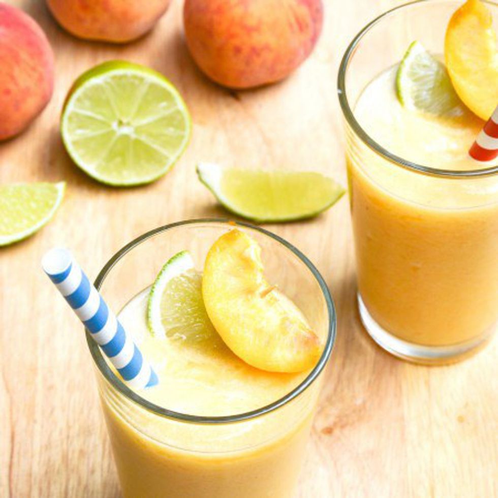 Peaches are undoubtedly a summer fruit and this drink is ultra refreshing and perfect for sipping by the pool. (It can be made with rum, or virgin with orange juice.